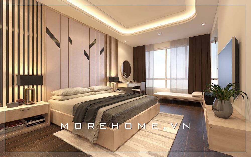 Mẫu thiết kế giường ngủ chung cư phong cách hiện đại, đơn giản