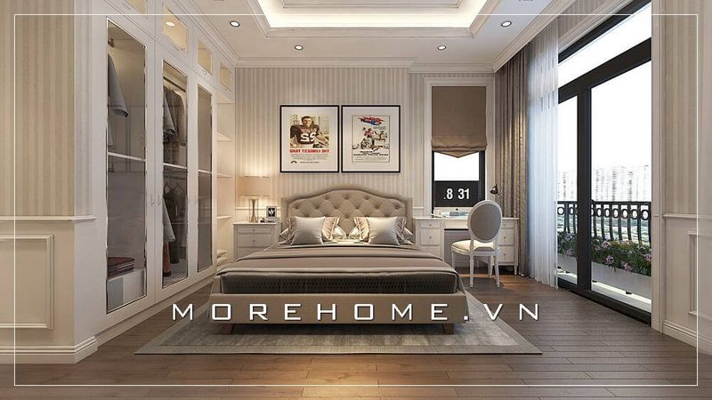 Mẫu giường ngủ bọc da khung gỗ sang trọng, tiện nghi phong cách tân cổ điển được nhiều người yêu thích và chọn lựa