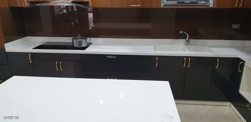 Mẫu đá ốp bếp Himacs màu trắng sẽ giúp căn phòng bếp của các căn hộ chung cư, nhà phố, biệt thự trở nên sang trọng hơn và có thêm nhiều tiện nghi.